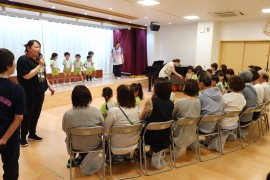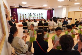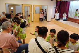 たんぽぽ組(3歳児)さくら組(4歳児)きく組(5歳児)のクラスが、おじいちゃん、おばあちゃんを「敬老会」にご招待しました。こども達が、日頃の感謝を伝え、一緒に歌をうたったり、一緒に遊んだりして、楽しいひとときを過ごしました。