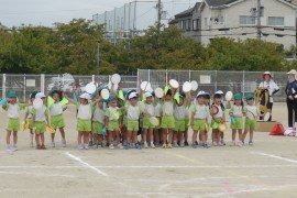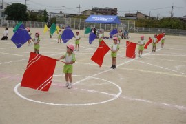 第3部は、5歳児きく組が、「リレー」「親子競技」「和太鼓」「カラーガード」「鼓隊」を披露しました。
