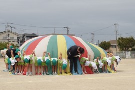 第2部は、4歳児さくら組が、「リレー」「パラバルーン」「遊戯」を披露しました。