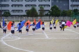 いっぱい練習してきたので、きれいに揃った旗の動きに沢山の拍手をもらえました。
