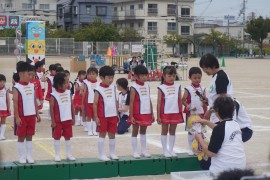 園旗を持って入場行進・開会式では、代表の園児がちかいのことばを元気にいいました。