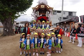 保育のようす 太子田神社秋祭りに参加しました 2025年10月20日(月) 太子田神社秋祭りでだんじりをひきました。(3歳児・4歳児・5歳児) 今日は、太子田神社の秋祭りです。午前中は、ご神事をみにいったり、ししまいが保育園に来てくれたりととても賑やかでした。午後は、3歳4歳5歳児が楽しみにしていただんじりをひきました。みんな大きなかけ声をかけて、頑張ってひきましたよ!楽しい秋祭りの一日でした。 もどる