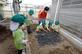 保育のようす クラスの様子 2025年11月20日(木) クラスの様子 5歳児きく組は、春にむけてプランターにちゅうりっぷの球根を一人ずつ植えました。赤・白・黄色・ピンク 何色のちゅうりっぷが咲くかな? 4歳児さくら組は、玉ねぎの苗をうえました。一人ずつ大事にもって、マルチシートの穴の中へ植えました。来年の収穫が楽しみですね! 3歳児たんぽぽ組は、体操教室で鉄棒を頑張りました。ちゅっと怖いけど、少しずつできるようになっています。 もどる