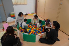 保育のようす 園庭開放の様子 2025年11月21日(金) 園庭開放「ボールプールで遊ぼう!」を開催しました。 11月の園庭開放では、「みのむしのリース作り」をした後、ボールプールやボールおとし、的あてなどを楽しみました。沢山のご参加を頂き、とても賑やかな開催となりました。 もどる