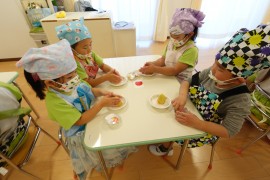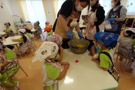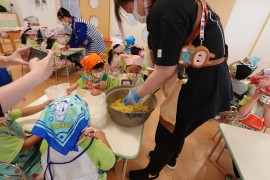 芋ほり遠足のおいもでクッキングをしました。(4歳児さくら組)