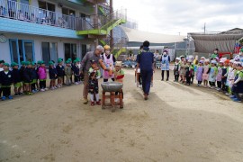 10時になって、園庭でもちつきのスタート!
