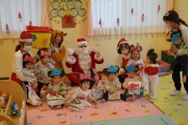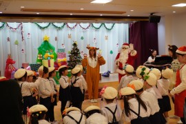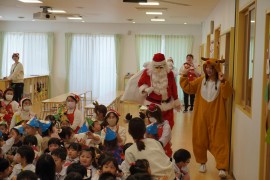 きく組のキャンドルサービスから始まり、パーティには、サンタさんとトナカイさんがきてくれました。