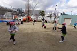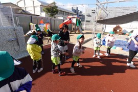 保育のようす 新年のおいさつとお正月遊びの様子 2026年1月8日(木) 新年のあいさつとお正月遊びの様子 2026年が始まりました!1月5日にみんなで園庭に集まり、新年のあいさつをしました。今年も元気に笑顔で毎日が過ごせるように頑張ります。8日はお正月遊びを楽しみましたよ!「すごろく」「大型すごろく」「ふくわらい」「こま」「はねつき」「おてだま」「かるた」などお正月の遊びを満喫しましたよ! もどる