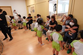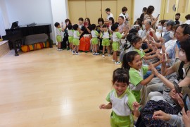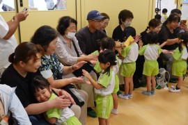 たんぽぽ組(3歳児)さくら組(4歳児)きく組(5歳児)のクラスが、おじいちゃん、おばあちゃんを「敬老会」にご招待しました。こども達が、日頃の感謝を伝え、一緒に歌をうたったり、一緒に遊んだりして、楽しいひとときを過ごしました。