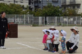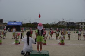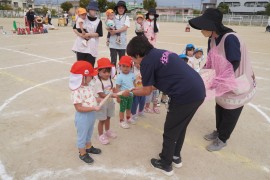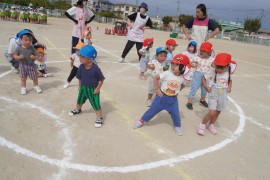 第3部は、5歳児きく組が、「リレー」「親子競技」「和太鼓」「カラーガード」「鼓隊」を披露しました。