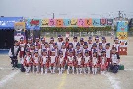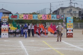 園旗を持って入場行進・開会式では、代表の園児がちかいのことばを元気にいいました。