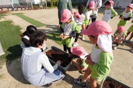 保育のようす クラスの様子 2025年11月20日(木) クラスの様子 5歳児きく組は、春にむけてプランターにちゅうりっぷの球根を一人ずつ植えました。赤・白・黄色・ピンク 何色のちゅうりっぷが咲くかな? 4歳児さくら組は、玉ねぎの苗をうえました。一人ずつ大事にもって、マルチシートの穴の中へ植えました。来年の収穫が楽しみですね! 3歳児たんぽぽ組は、体操教室で鉄棒を頑張りました。ちゅっと怖いけど、少しずつできるようになっています。 もどる
