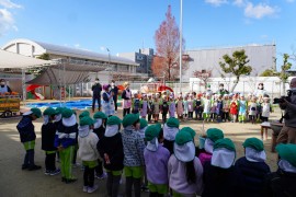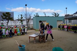 10時になって、園庭でもちつきのスタート!