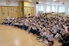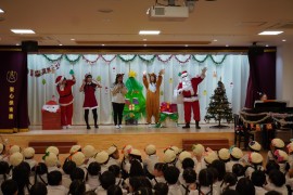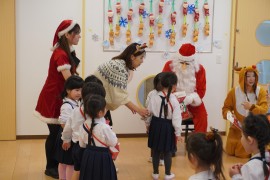 きく組のキャンドルサービスから始まり、パーティには、サンタさんとトナカイさんがきてくれました。