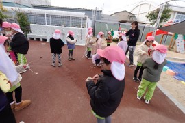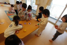 保育のようす 新年のおいさつとお正月遊びの様子 2026年1月8日(木) 新年のあいさつとお正月遊びの様子 2026年が始まりました!1月5日にみんなで園庭に集まり、新年のあいさつをしました。今年も元気に笑顔で毎日が過ごせるように頑張ります。8日はお正月遊びを楽しみましたよ!「すごろく」「大型すごろく」「ふくわらい」「こま」「はねつき」「おてだま」「かるた」などお正月の遊びを満喫しましたよ! もどる